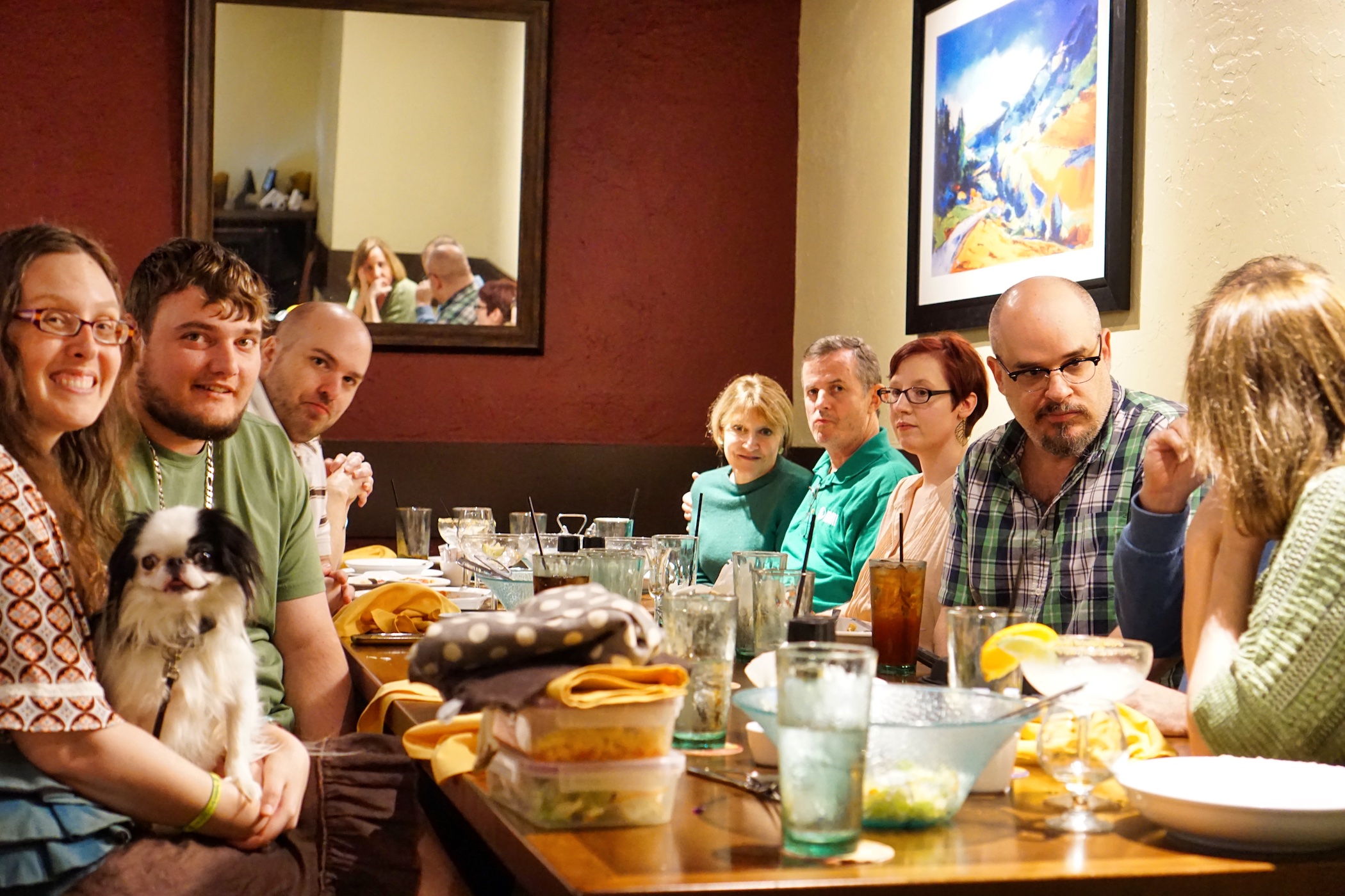 I got to sit next to Tommy, who is one of my favorite people! We had a good time talking and he did a very good job of not petting Hestia. I was pretty much catty-corner to CJ and his wife Melissa, so I was able to talk with them and read lips pretty well. We also got to talk a lot with Dan and Jen. Dan and I did WRAP together, so we are old friends, but I haven’t had a chance to talk with Jen very much so it was really fun!